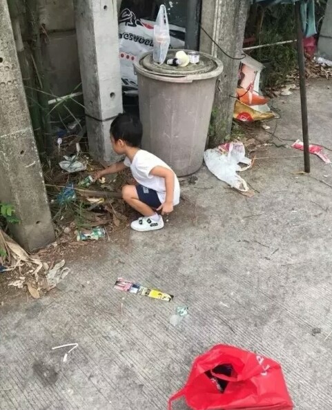 年轻妈妈告诉儿子捡垃圾能赚钱,小男孩心中竟有点兴奋。