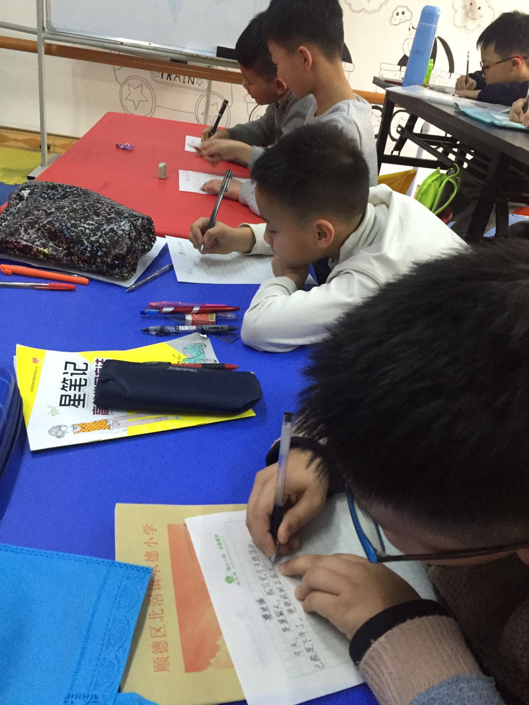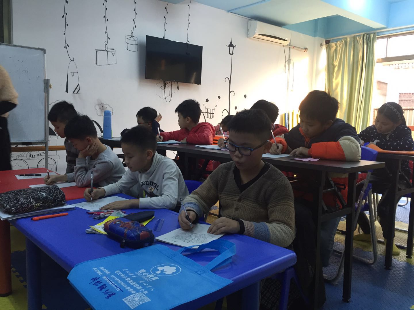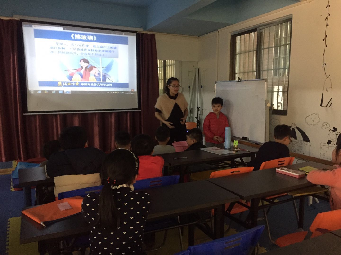 贡子宏2019年寒假作文公益班今天开营了!下午两点,同学们就陆续过来准备上作文课了,每个同学都笑容灿烂,精神饱满!今天我们的作文课是《擦玻璃》,通过思路点拨的方法,把一句话变成一篇叙述详细的作文。在课堂上老师让同学直接拿着水盆,一步步的引导同学们你一句我一句把整篇作文写出来。课后很多同学表示作文不难写,还写得比较详细呢!下面大家欣赏一下我们同学课堂上的风采!